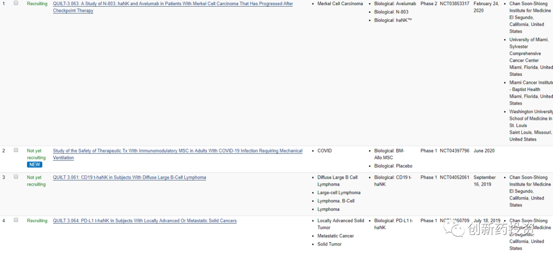 所以只以“CARNK”为关键字去检索是没用的,根本搜不到,要以haNK、taNK为关键字进行检索才能检索到NantKwest公司的临床试验: