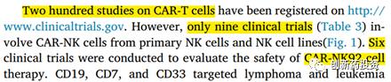 然而不幸的是,目前大多数综述性论文都没有意识到这一点(如下图所示,反正我看过的每一篇关于CAR-NK的Review都漏掉了不少临床试验),这在宣传上肯定是要出偏差的: