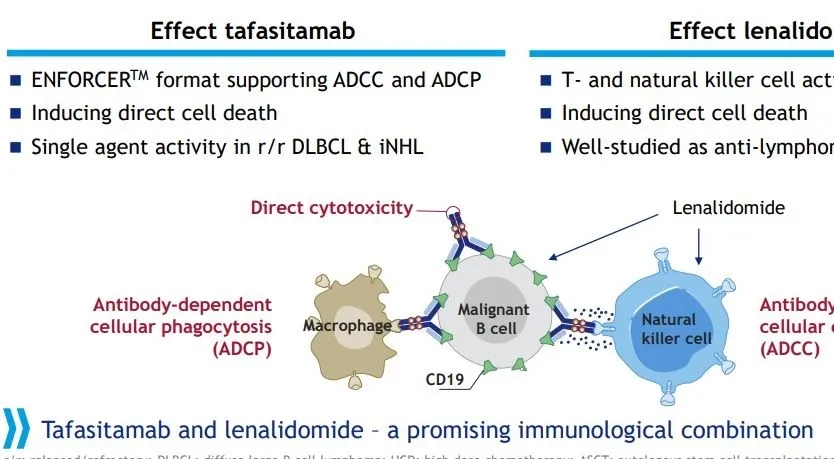 MorphoSys对Tafasitamab的Fc端进行修饰,增强了抗体依赖性细胞介导的细胞毒作用(ADCC)和抗体依赖性细胞吞噬作用(ADCP),以此改进杀伤肿瘤细胞的关键机制,在临床前模型中已验证通过结合CD19的tafasitamab可直接诱导癌细胞凋亡。
