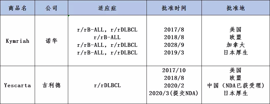 而预计在不久后,这个领域将又迎来4款CD19-CAR-T疗法。去年底,吉利德旗下的Kite和百时美施贵宝分别向FDA递交了其CD19-CAR-T疗法-KTE-X19(用于治疗复发或难治性套细胞淋巴瘤--MCL)和lisocabtagene maraleucel(用于治疗R/R BLBCL成人患者)的BLA。国内速度也很快,目前已有公司药企申请上市。2月24日,国家药品监督管理局(NMPA)已正式受理了复星凯特的益基利仑赛注射液的新药上市申请(NDA),用于治疗二线或以上系统性治疗后用于治疗R/R BLBCL成人患者。前两天(6月30日),药明巨诺也已向NMPA申报了CD19-CAR-T疗法JWCAR029{瑞基仑赛注射液(暂定)}的上市申请,适应症为复发难治淋巴瘤。随着新兴玩家的不断加入以及后续产品上市的推进已,该领域的市场竞争已进入白热化。