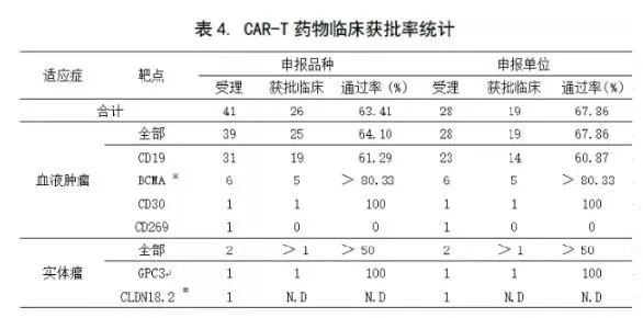 2018年这波CAR-T注册热使得审评审批环节极为“拥堵”,申报企业间竞争加剧。相当一部分申报单位未能拿到临床试验批件,或获得临床试验默示许可。(【说明】原国家食药监总局(CFDA)2018年第50号公告对临床试验审批程序调整为:“自申请受理并缴费之日起60日内,申请人未收到CDE否定或质疑意见的,可按照提交的方案开展药物临床试验”,即默示许可制,于2018年7月24日起实施)