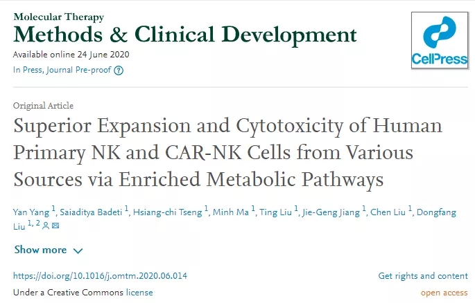 近日,Molecular Therapy Methods & Clinical Development 上刊登了一篇来自美国新泽西罗格斯大学刘东方研究团队的文章,其中提出通过调控CAR-NK细胞免疫代谢可以使得各种来源的NK和CAR-NK细胞获得优于传统方法的扩增和细胞毒性。