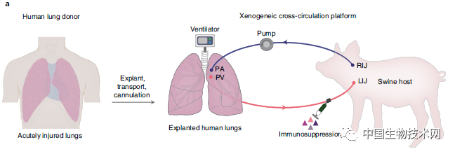 研究人员说,这表明他们的交叉循环平台可以与EVLP联合使用,以帮助恢复EVLP无法单独保存的肺。