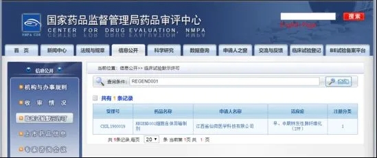 据国家药品监督管理局药品审评中心官网公布消息,江西省仙荷医学科技有限公司(简称仙荷医学)旗下的REGEND001细胞自体回输制剂,于2020年7月15日获得药监局颁发的《药物临床试验批准通知书》(批件号:CXSL1900019),用于治疗早、中期特发性肺纤维化。这款由仙荷医学及其母公司吉美瑞生研发的干细胞新药是全世界第一个获批进入临床的肺干细胞产品,利用独特的肺组织再生修复机制发挥治疗作用,属于真正意义上的First-in-class新药。