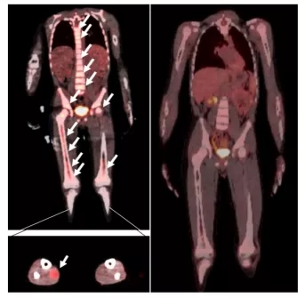CAR-T治疗前后患者PET-CT扫描成像对比(来源:Nature Communications)