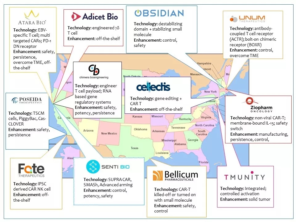 27 Senti Bio只是研发新一代CAR-T技术的公司之一。目前仅在美国就有几十个相似的或相竞争的生物技术公司。每个公司的技术各有千秋,但最终目标都是改进CAR-T的产品性能或商业性能。