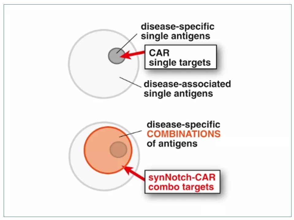 16 很少有实体瘤只依靠一个表面抗原就能被区分。因此,识别多靶点的SynNotch CAR-T技术除了可以减少副作用外,还可以扩展CAR-T的靶向空间。