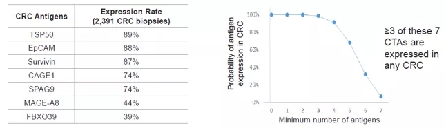 图1:7种癌睾抗原在2391名结直肠癌患者活检组织中的表达情况