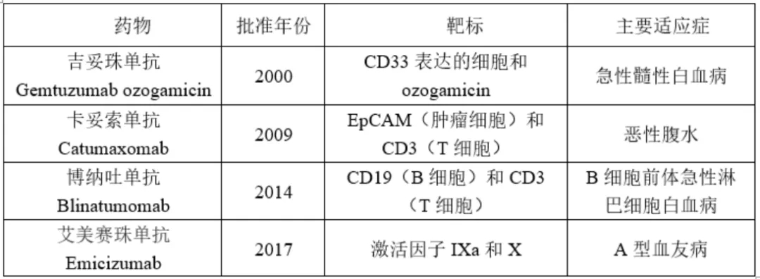 表1 四种已批准的前瞻性设计开发的多特异性药物