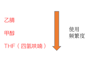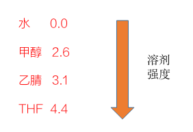 溶剂的疏水性,决定了它们洗脱能力的强弱,而溶剂的洗脱能力,又决定了被洗脱化合物所需的溶剂量,常用溶剂中,疏水性能的排列是乙腈大于甲醇大于水,所以乙腈是洗脱能力最强的溶剂。