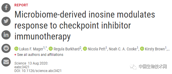 该研究第一作者、McCoy实验室的高级博士后研究员Lukas Mager说:“肌苷会直接与T细胞相互作用,并与免疫治疗一起提高治疗效果。在某些情况下,摧毁了所有的结肠直肠癌细胞。”