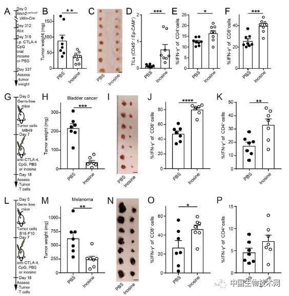 研究人员发现肠道假长双歧杆菌通过产生代谢物肌苷来调节并增强了免疫治疗反应。免疫治疗引起的肠道屏障功能下降增加了肌苷的系统转运和抗肿瘤Th1细胞的活化。肌苷的作用依赖于T细胞表达的腺苷A2A受体,并需要共同刺激。