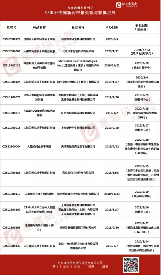 而截止目前,受理的13款中有12款干细胞新药IND已经获得临床默示许可,除REGEND001细胞自体回输制剂外,其余获得临床批件的分别是胎盘、脐带、牙髓、异体/自体脂肪来源的间充质干细胞;尤其值得一提的是,这12款获准临床的干细胞产品中,有8款是获准于今年。