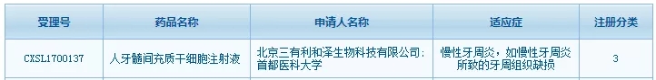 2020年8月15日/医麦客新闻 eMedClub News/--昨日,据国家药监局药品审评中心(CDE)官网显示,北京三有利和泽生物科技有限公司和首都医科大学联合申报的人牙髓间充质干细胞注射液的新药临床试验申请获得默示许可,适应症为:慢性牙周炎,如慢性牙周炎所致的牙周组织缺损。