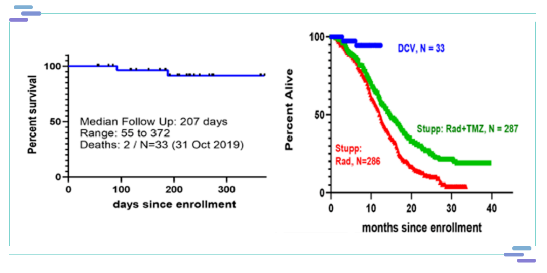 接受AV-GBM-1治疗的50例可评估患者的15个月总生存率为76%,而对照组287例接受标准治疗的患者的12个月和15个月总生存率分别为61%和48%。临床表明,接受该治疗的患者15个月的总生存率提高了28%,疗效格外显著。