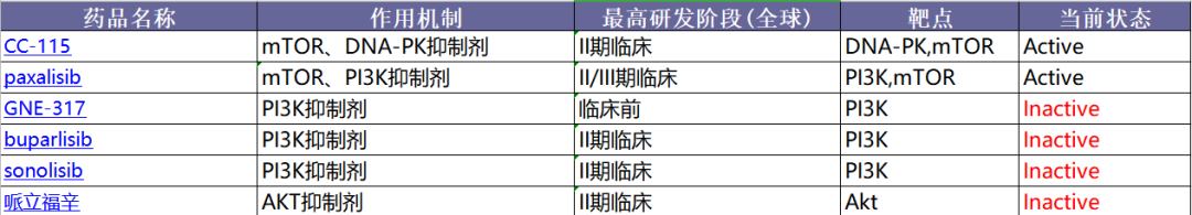 针对GBM适应症的PI3K/AKT/mTOR信号通路相关项目