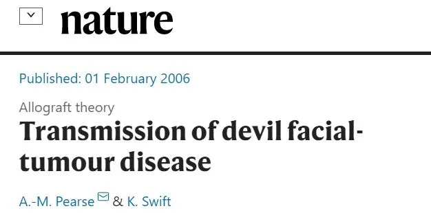 [3] A.-M Pearse et al., (2006) Transmission of devil facial-tumour disease. Nature DOI: https://doi.org/10.1038/439549a