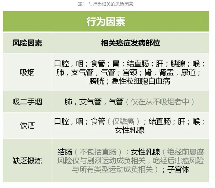 中国常见的致癌因素可分为五大类23种风险因素(详见下表):