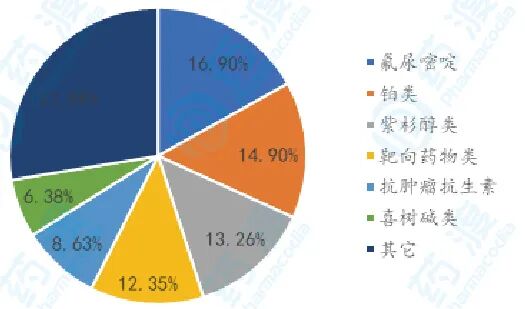 图2 2016年中国重点城市公立医院胃癌药物占比,药渡咨询郭雷团队整理