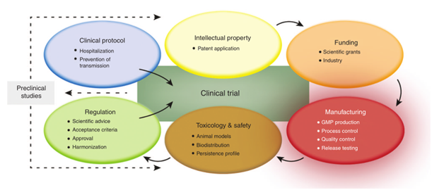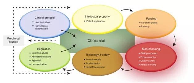 Fig 1. 溶瘤病毒产品从实验室规模到临床阶段的转化的关键步骤。