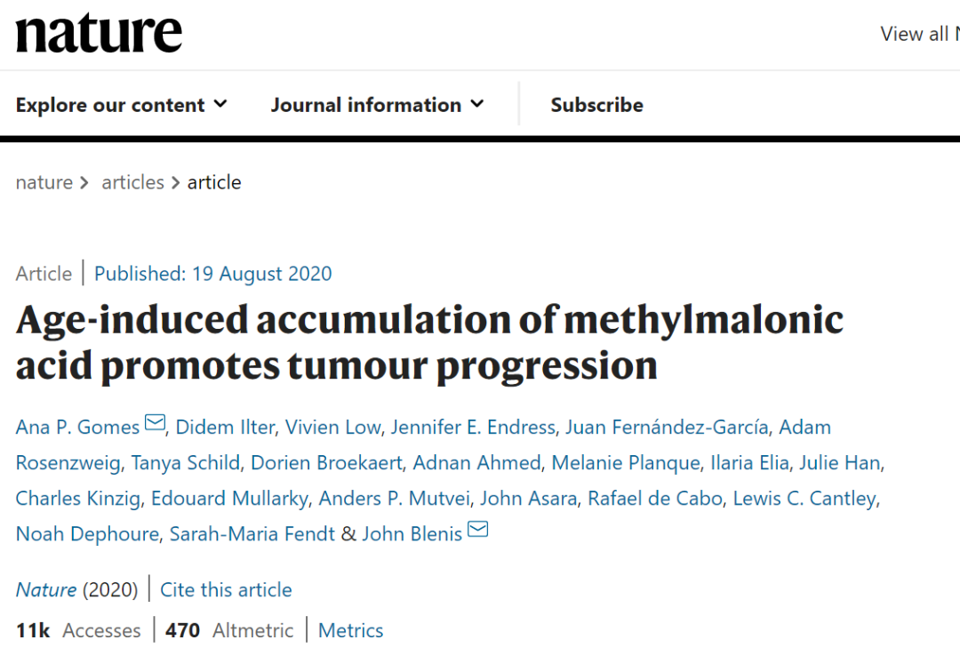 1.Ana P. Gomes, Didem Ilter, et al. Age-induced accumulation of methylmalonic acid promotes tumour progression, Nature (2020)