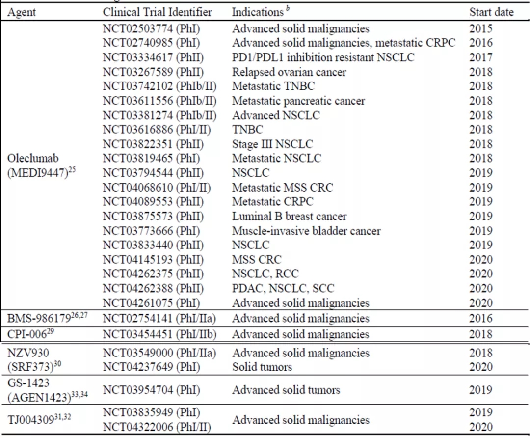 图4. CD73抗体临床在研药物