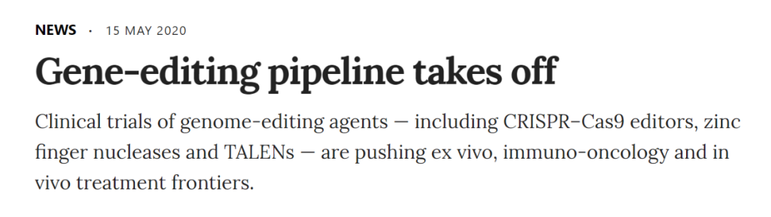 近日,Nature Reviews Drug Discovery 上发表了一篇题为Gene-editing pipeline takes off 的文章。作者在文中对基因编辑疗法的研发管线进行了盘点和分析。