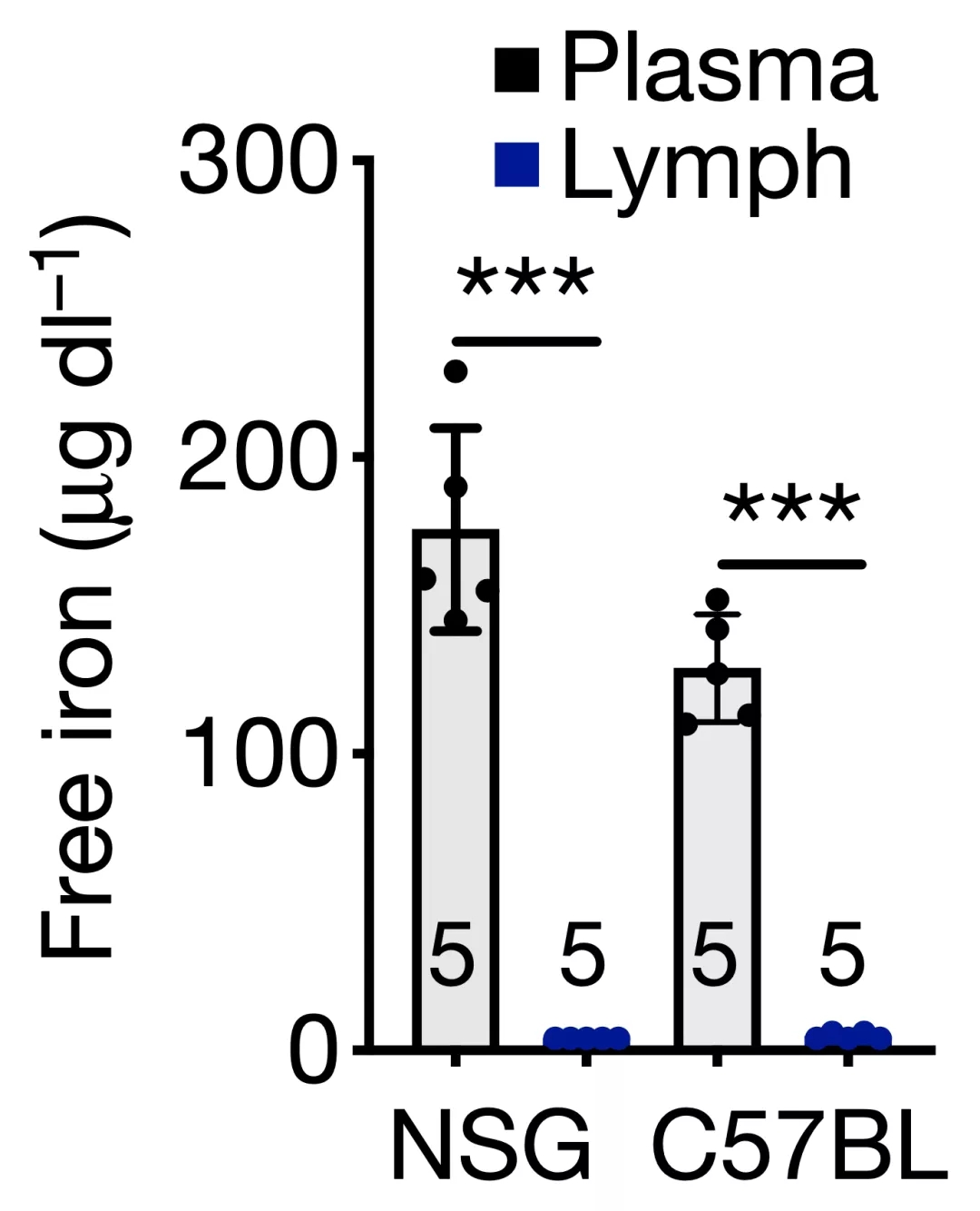 一看到脂质过氧化这个结果,Ubellacker和她的同事立马就想到了铁死亡。因为铁死亡就是铁离子促进细胞膜脂质过氧化导致的[8],而且血液中铁离子的浓度是淋巴的100多倍。