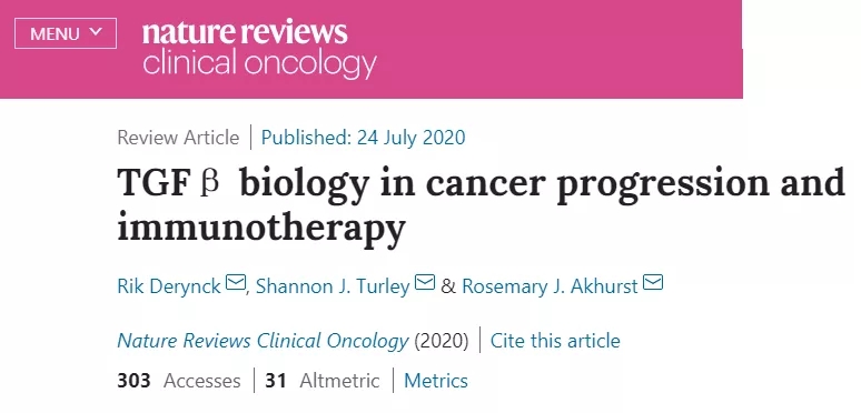 [1] Rik Derynck et al. TGFβ biology in cancer progression and immunotherapy. Nature Reviews Clinical Oncology (2020).
