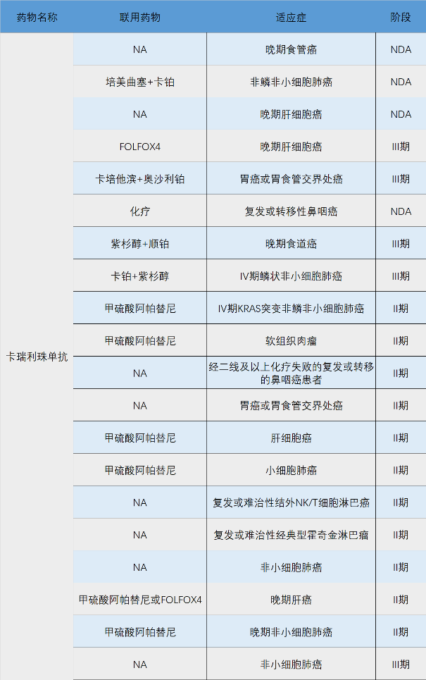 9 月 2 日,CDE 官网显示,卡瑞利珠单抗递交一项新适应上市申请,且被拟纳入优先审评(受理号暂未公布);根据恒瑞此前的公告,本次新适应症是联合顺铂和吉西他滨一线治疗局部复发或远处转移鼻咽癌。卡瑞利珠单抗新适应症的申请上市或许能让我们捕捉到一个讯息,即国内PD-1单抗市场的竞争愈发激烈。