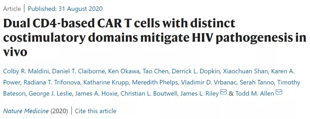 2# Maldini, C.R. et al. Dual CD4-based CAR T cells with distinct costimulatory domains mitigate HIV pathogenesis in vivo. Nature Medicine (2020)
