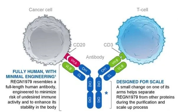 近日(2020年9月7日),据CDE官网显示,再鼎医药的CD20xCD3双特异性抗体REGN1979获批临床。