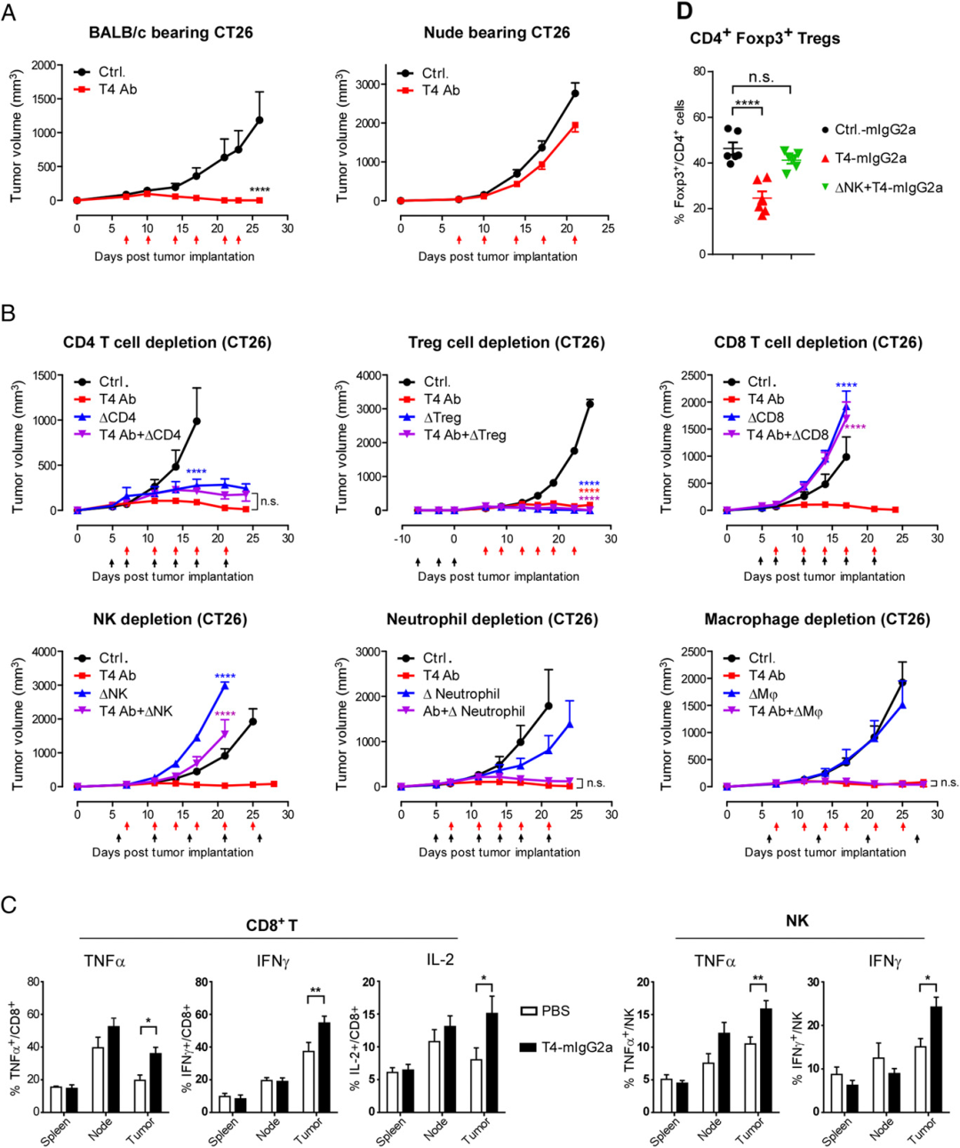 CD8 T细胞和NK细胞对于TIGIT抗体的活性是必须的,进一步支持了NK细胞通过ADCC清除Treg的作用机制。
