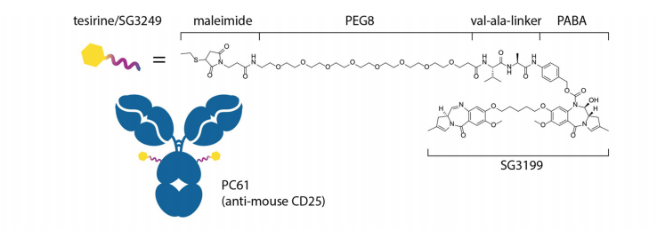 这项研究的结果表明,基于PBD二聚体毒素的、靶向CD25的Cami能够消耗Tregs,并通过诱导肿瘤免疫消除已经建立的肿瘤。