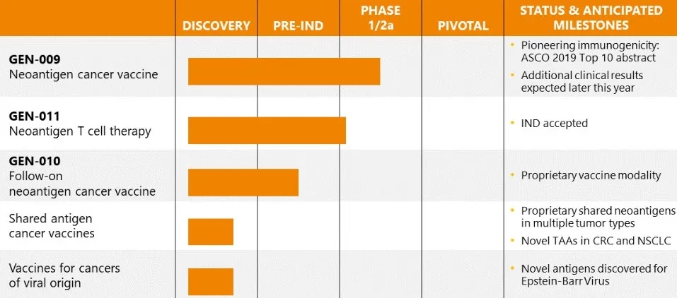 GEN-009(个体化新生抗原疫苗,正在进行I/IIa期临床试验)