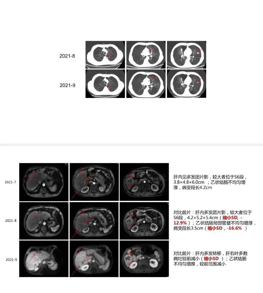 结直肠癌是消化道常见的恶性肿瘤。微卫星稳定(MSS)患者约占结直肠癌总数的93%,但这些病例对单药免疫治疗无效。本次研究中的 10 名晚期患者均在至少经过标准二线治疗后肿瘤进展。采用“三联疗法”,肿瘤得到很好的控制,肿瘤标志物明显下降,免疫功能增强,肠道菌群比治疗前更平衡,疗效显着,有效率达60%。疗效惊人!