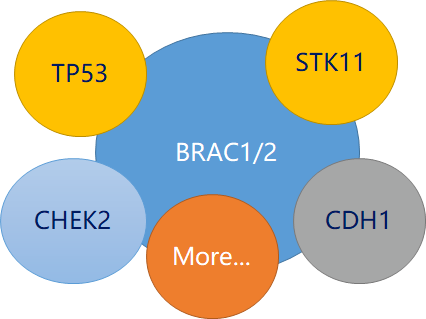 - 推荐BRCA1/2、CDH1、PTEN、STK11、TP53、ATM、CHEK2、PALB2、NBN、NF1 等多基因检测;