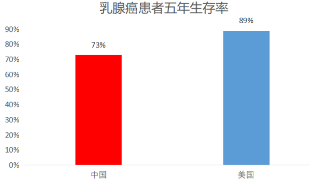 03.乳腺癌患者的生存情况 欧、美、日等发达国家自上个世纪末先后制定并推行了女性乳腺癌群体筛查指南,从而将乳腺癌5年生存率提高到89%。中国女性乳腺癌的 5 年生存率为73%,农村地区为55.9%,而美国女性乳腺癌的5年生存率达89%。相比之下,中国女性乳腺癌的防治工作任重道远。