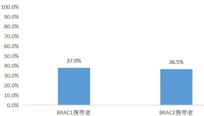 携带BRCA1 和 BRCA2 突变的健康女性到 70 岁累积发生乳腺癌的风险分别为37.9%和36.5%,普通女性发生乳腺癌的风险仅为3.6%,相较于普通女性,BRCA1和BRCA2基因突变携带者乳腺癌发病风险提高了10~20倍。