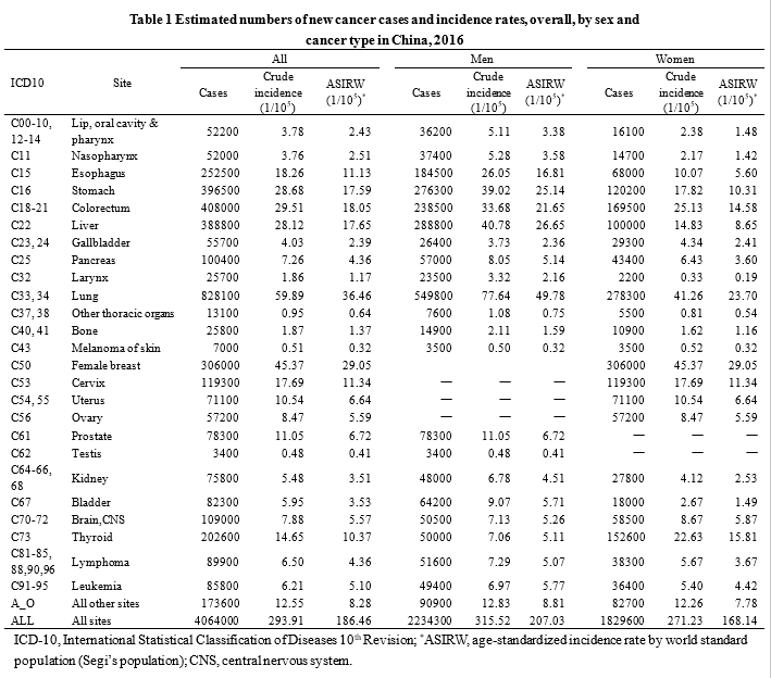 2022年2月,国家癌症中心发布了最新一期的全国癌症统计数据。全国肿瘤登记中心负责全国肿瘤登记数据收集、质量控制、汇总、分析及发布工作。(由于全国肿瘤登记中心的数据一般滞后,本次报告发布数据为全国肿瘤登记中心收集汇总全国肿瘤登记处2016年登记资料。)该研究基于国家癌症中心最新数据,从全国682个癌症监测点中遴选487个高质量监测点,覆盖人口达3.8亿,详尽阐述了2016年中国癌症疾病负担情况。与2015年相比,上报统计数据的监测点数量增加181个,高质量监测点增加119个,表明我国的肿瘤登记工作覆盖面逐步推进,数据质量和规范程度进一步提高,为国家卫生政策制定提供更有力的科学依据。