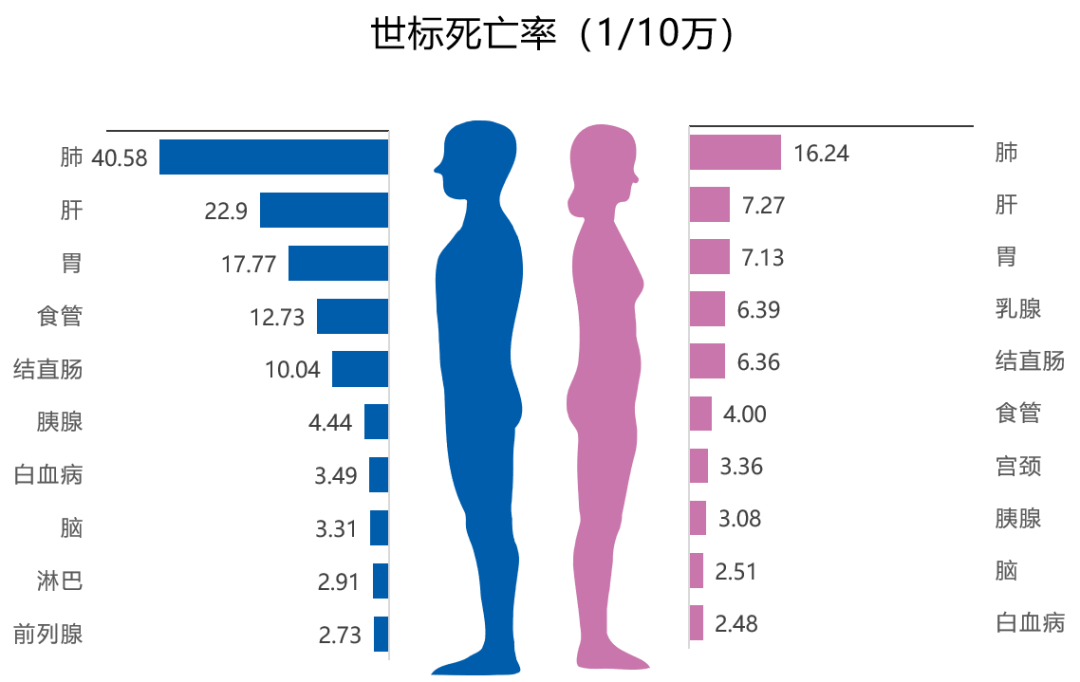 肺癌霸主地位不可撼动,死亡人数亦遥遥领先