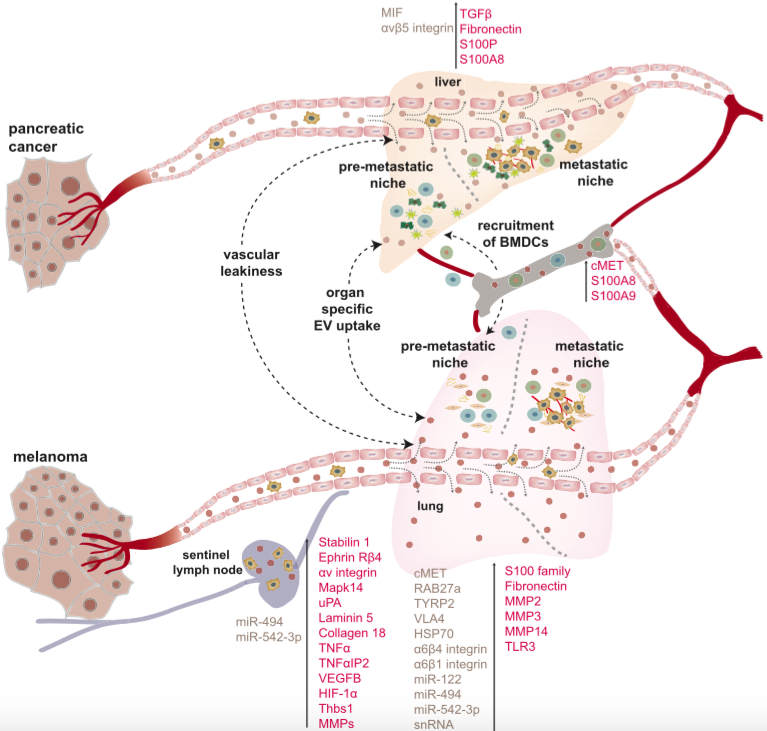 参考文献: Becker A, Thakur BK, Weiss JM, Kim HS, Peinado H, Lyden D. Extracellular Vesicles in Cancer: Cell-to-Cell Mediators of Metastasis. Cancer Cell. 2016 Dec 12;30(6):836-848. Review. PubMed PMID: 27960084.