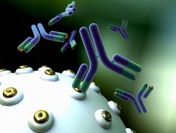 目前一种潜在的免疫疗法药物是在实验室中开发出的单克隆抗体,这些药物能够结合癌细胞抗原,并且对其进行标记。比如,药物赫赛汀就是一种能够结合人类表皮生长因子受体2 (HER-2)的单克隆抗体,HER-2在一些致死性的乳腺癌中水平较高,而药物赫赛汀的结合能够诱发对乳腺癌细胞的棉衣攻击。