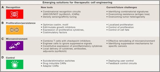 同时存在一定挑战,主要是需要建立一套可靠、安全、高效率的平台,并且扩大肿瘤种类适用范围,而合成生物学方法在细胞工程的使用,提供了用于免疫细胞规划(programming immune cells)的工具集,这里介绍如何使用这些工具来设计下一代智能T细胞进行精准治疗。