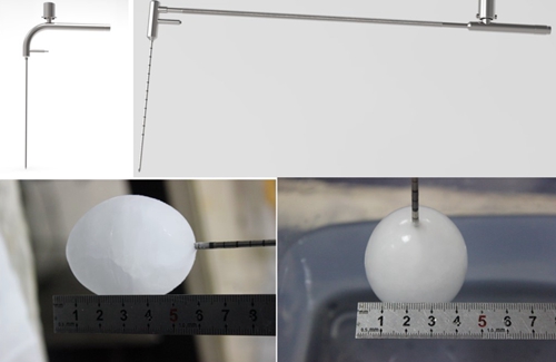 图 3 与微创治疗系统配合使用的多种规格一次性使用无菌冷冻消融针及冰球产生情况