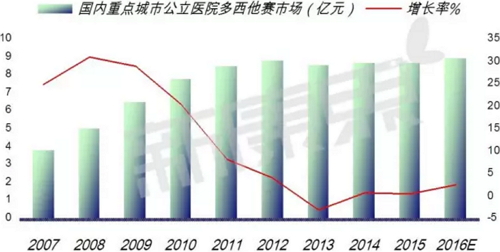 多西他赛在美国、日本等 80 多个国家相继上市,1996 年进入我国开始临床验证后上市。江苏恒瑞在国内已开发获准上市,目前恒瑞的多西他赛在医院的销售额已经超过进口药物,成为销量最大的商家。