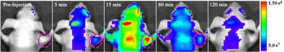 图 2. DNA“纳米医生”探针经尾静脉注入老鼠体内的实时荧光成像图