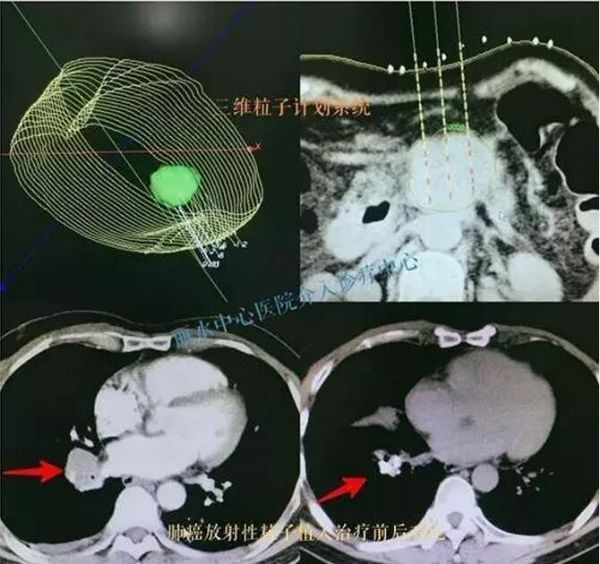 粒子植入疗法是在影像学设备引导下,将能杀死肿瘤细胞的放射性粒子(放射性碘-125粒子,只有4.5毫米长,有效射程1.7cm,属低能辐射),CT或MRI引导下直接种植在瘤体中,射线集中肿瘤内照射,作用于增值期肿瘤细胞,对正常组织损伤极少,不会引起白细胞下降等不良反应。从而达到“杀死”肿瘤细胞、使瘤体缩小的目的。是对传统放疗的升级换代。