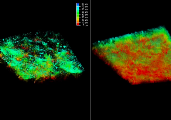 当控制基因(称为 SerpinB2)被关闭时,研究人员看到细胞不能移动改造基质。