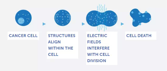 ▲电场可以通过抑制细胞分裂的方法,产生抗癌效果(图片来源:Novocure 官方网站)